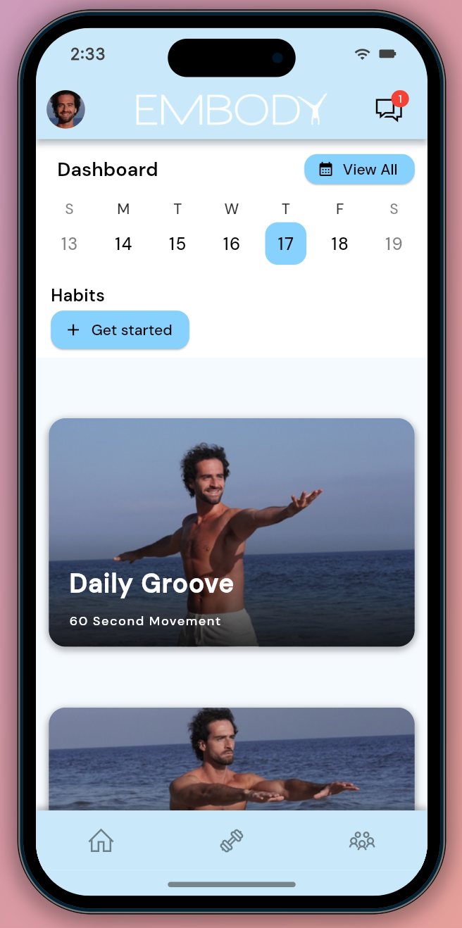 His signature Posture Grooves have been featured on television and inspired millions on social media. He created the Embody App to make his programs and teachings accessible to everyone, anywhere.